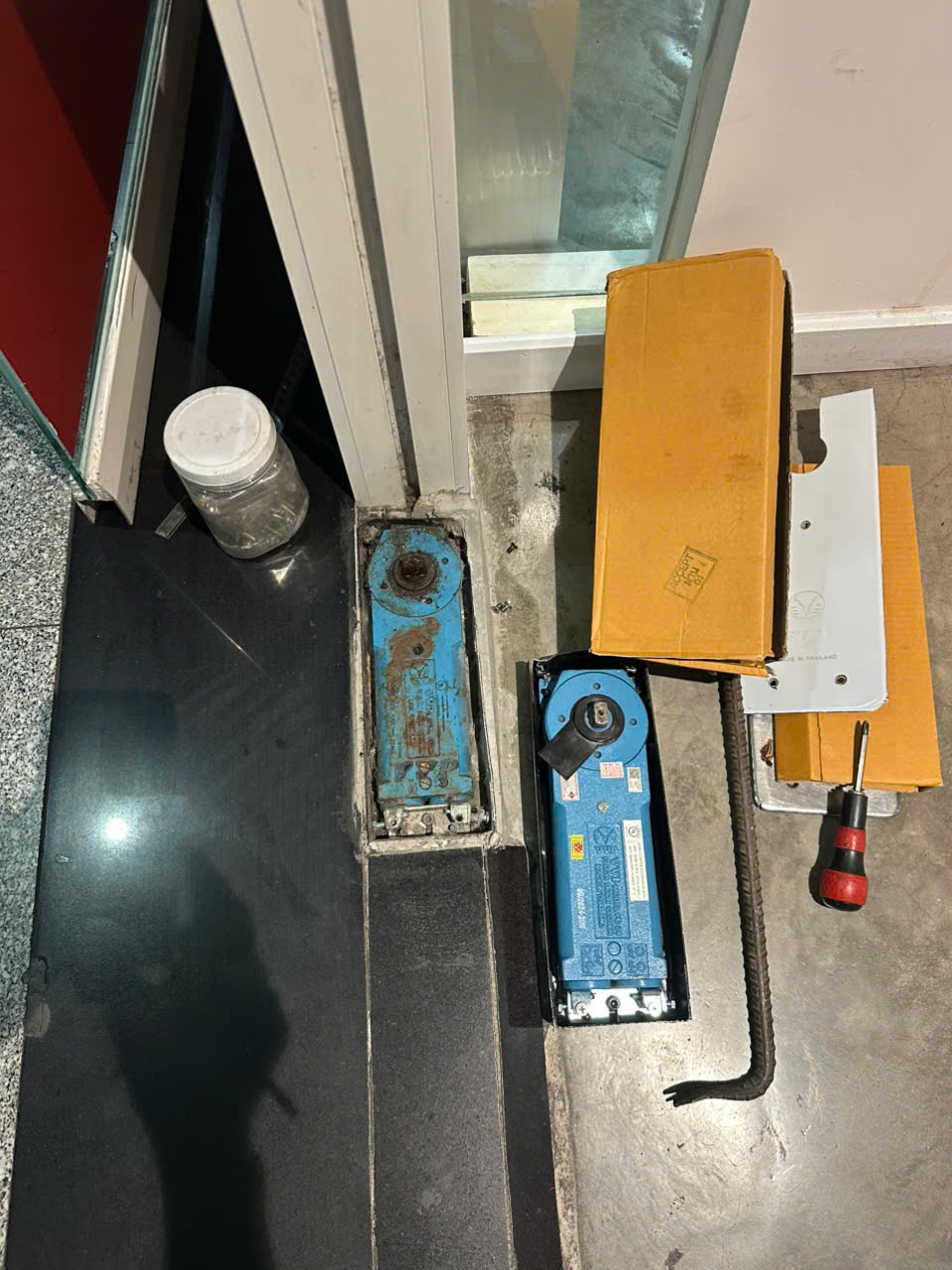 - Sửa cửa kính cường lực đóng mở nặng, đóng mở nhanh, đóng mở gây âm thanh khó chịu, cửa đóng không khít, không hít, bản lề kêu cọc cạnh.